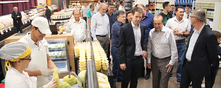 | Gallassini com diretores do hipermercado Muffato e autoridades de Campo Mourão |