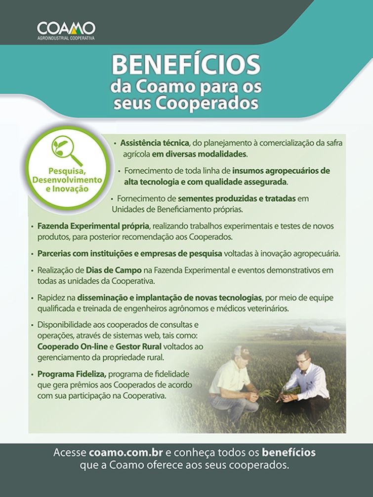A diretoria da Coamo nos traz informações importantes seja sobre o cenário político, econômico e da cooperativa. Se a Coamo vai bem, os cooperados vão bem e isso vem acontecendo desde o início da cooperativa.