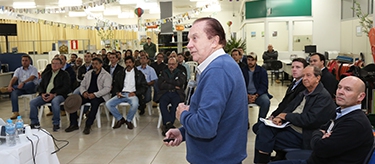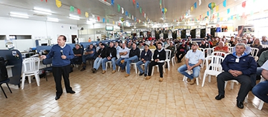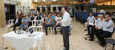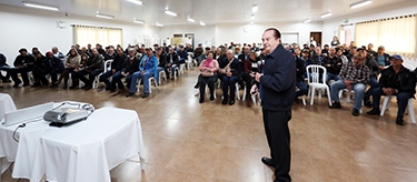 | José Aroldo Gallassini em reunião com cooperados em Nova Santa Rosa (PR) |