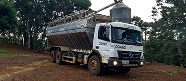 Caminhão entrega ração direto na propriedade