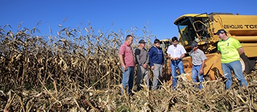 | Família Antunes com o agrônomo Thiago Xavier Bonfim e colaboradores durante a colheita |