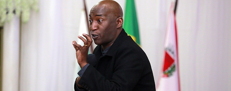 | Nos três eventos, a parte motivacional ficou por conta do professor e palestrante João Carlos Oliveira. Na imagem, momento da palestra em Coronel Vivida |