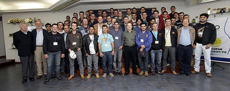 | Professor Albino com a diretoria da Coamo e alunos da 12ª turma de Jovens Líderes Cooperativistas |