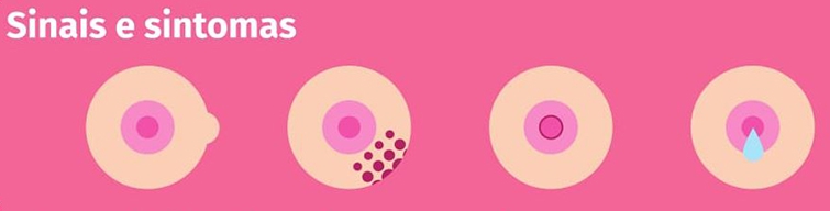 - Pele da mama avermelhada, retraída ou parecida com casca de laranja;