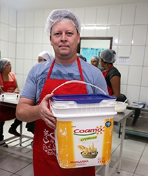 | CLODOALDO DONIZETE SCHEFER: “Vim me aperfeiçoar para tentar entrar neste mercado de panificação e melhorar o meu futuro. É um curso gratuito com a qualidade do Senai e dos Alimentos Coamo.” |
