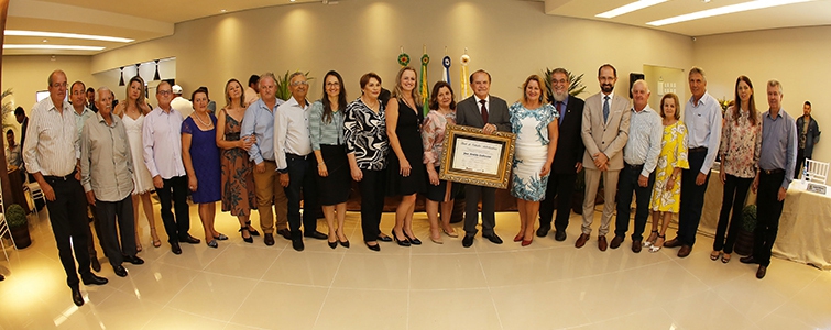 As principais lideranças políticas, empresariais e econômicas de Sidrolândia (Sudoeste do Mato Grosso do Sul) prestigiaram no dia 18 de outubro a cerimônia de entrega do título de cidadão sidrolandense ao engenheiro agrônomo José Aroldo Gallassini, presidente da Coamo. A honraria foi conferida por unanimidade pela Câmara de Vereadores, numa iniciativa do vereador Waldemar Acosta. “É um empresário de sucesso, um visionário, que já escreveu seu nome na história do município, um exemplo inspirador”, destaca.