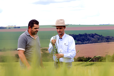 Cooperado Sidney Aparecido da Silva com o agrônomo Ulysses Marcellos Rocha Netto, do Detec da Coamo em Janiópolis