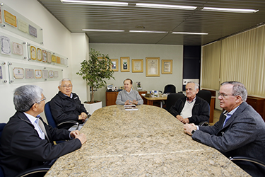 Alberto Issamu Honda (superintendente da Fundação Shunji Nishimura), Jiro Nishimura (presidente da Fundação Shunji Nishimura), Dr. Aroldo, Pericles Vaz da Silva (Fundação Shunji Nishimura) e Antonio Sérgio Gabriel (superintendente Administrativo da Coamo |
