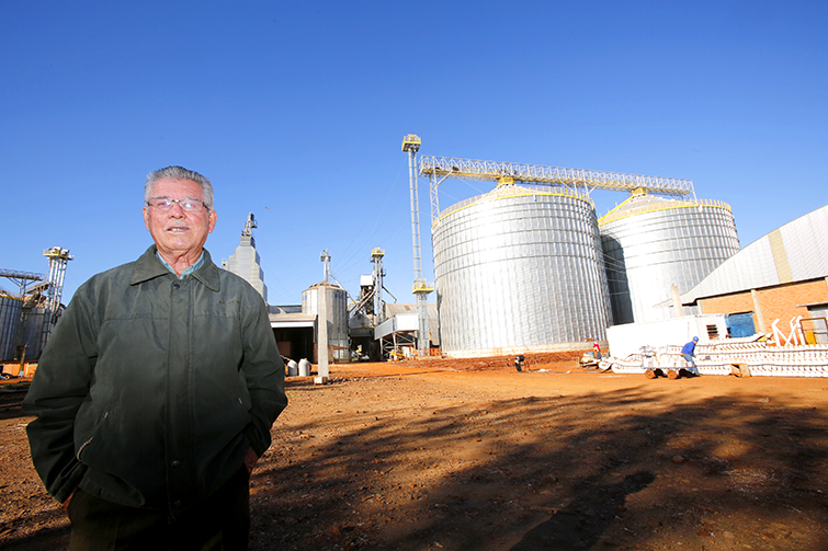 ‘Seo’ José Vicente é cooperado desde 1971 e é um dos que reconhece o trabalho da Coamo na região; no fundo obras de ampliação da Unidade