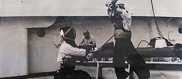 No navio, durante a viagem para o Brasil, ‘seo’ Terumi aproveitava o tempo para praticar Kendo |