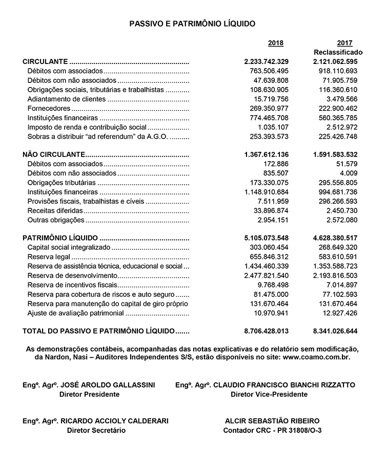PASSIVO E PATRIMÔNIO LÍQUIDO