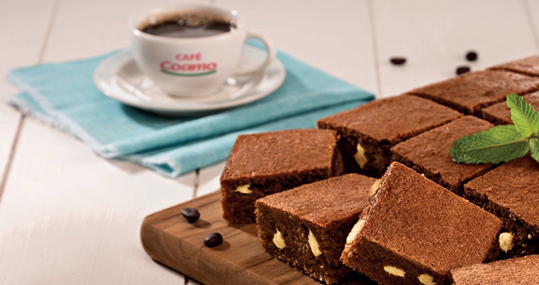 Bata as claras em ponto de neve e reserve. Ainda na batedeira, bata as gemas com o açúcar e com a margarina até obter um creme leve e claro. Diminua a velocidade e adicione o café, alternando com a farinha de trigo. Sem bater, junte as claras, o chocolate branco e, por último, o fermento. Coloque em uma forma retangular (24 x 35 cm) forrada com papel manteiga e asse no forno preaquecido à temperatura moderada (180 ºC) por cerca de 40 minutos ou até que ao espetar um palito, ele saia seco. Depois de frio, corte em 30 quadrados. Sirva em temperatura ambiente.