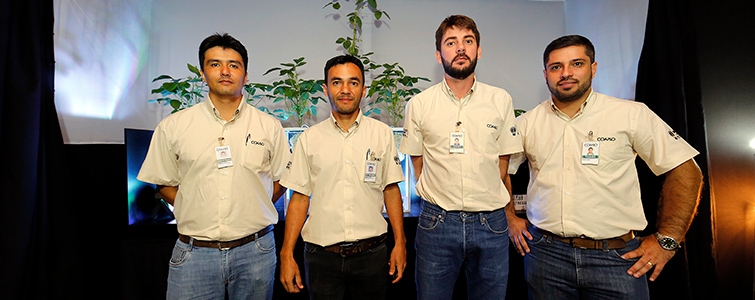 | Diretoria participou todos os dias do Encontro de Cooperados: Aquiles de Oliveira Dias, superintendente Técnico, Marcelo Sumiya, gerente de Assistência Técnica, Ricardo Accioly Calderari, diretor-secretário, Claudio Francisco Bianchi Rizzatto, diretor-vice-presidente, e José Aroldo Gallassini, diretor-presidente da Coamo |