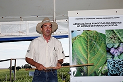 A estação contou com a presença dos pesquisadores da Embrapa/Soja, Rafael Moreira Soares, Mauricio Meyer e Claudia Vieira Godoy. “É uma doença que causa preocupação e que se não manejada de forma eficiente pode causar grandes prejuízos. O manejo não se resume apenas a aplicação de fungicidas, mas a uma série de ações que vão desde questões legislativas, como o cumprimento do vazio sanitário, até a escolha de cultivares mais resistentes à doença”, comenta Soares.