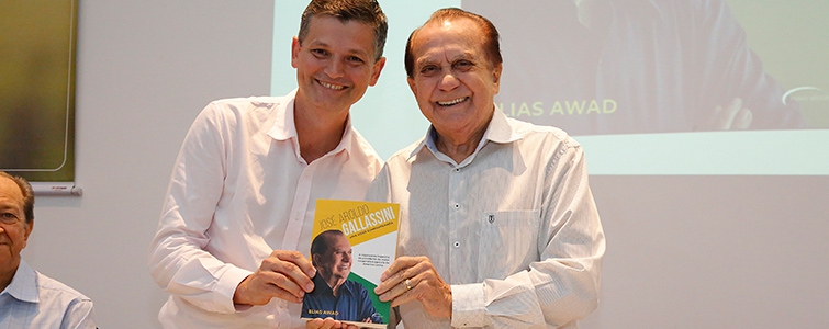 | Robson Mafioletti, superintendente do Sistema Ocepar, recebeu o livro com a biografia de José Aroldo Gallassini, lançado durante a Assembleia da Credicoamo |