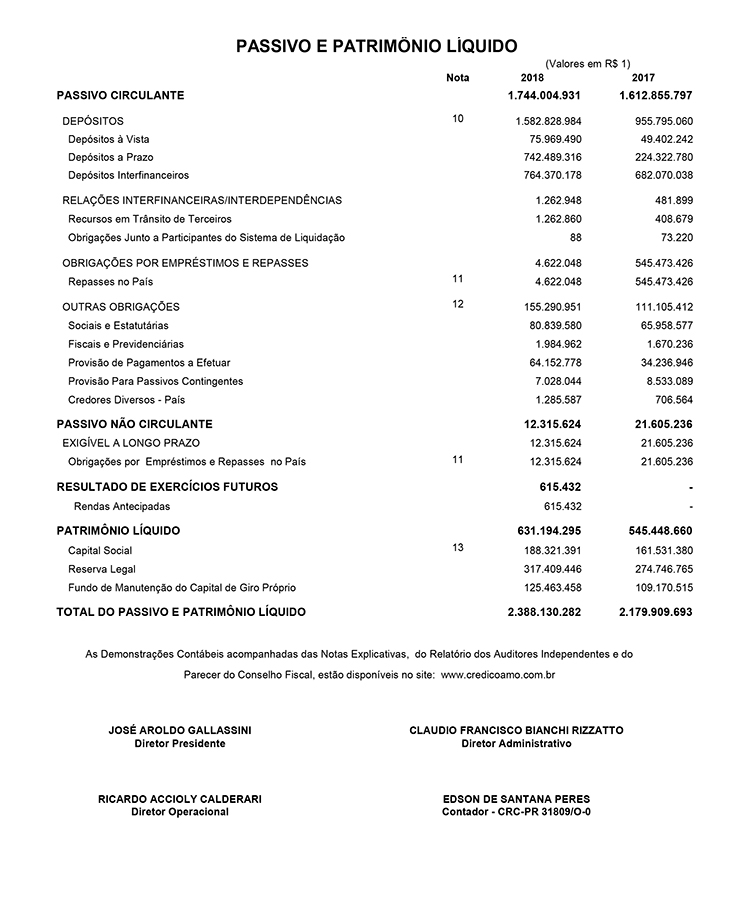 Os associados da Credicoamo Crédito Rural Cooperativa aprovaram no dia 28 de fevereiro, em Assembleia Geral Ordinária, a prestação de contas e a distribuição de sobras do exercício de 2018. A Credicoamo registrou ativos de R$ 2,39 bilhões, com crescimento de 9,55%, e um patrimônio líquido de R$ 631,19 milhões, com crescimento de 15,72%. Na demonstração do resultado do exercício apresentou receita global de R$ 207,91 milhões e sobras no valor de R$ 98,68 milhões, com crescimento de 18,45% em relação ao ano de 2017.