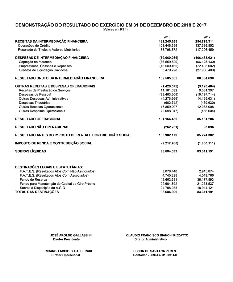 “Em 2018, a Credicoamo registrou novamente excelentes resultados, que foram possíveis pela efetiva participação dos associados no dia a dia da cooperativa. Os resultados foram positivos, também, pelo profissionalismo e dedicação dos funcionários”, comenta o diretor-presidente da Credicoamo, José Aroldo Gallassini.