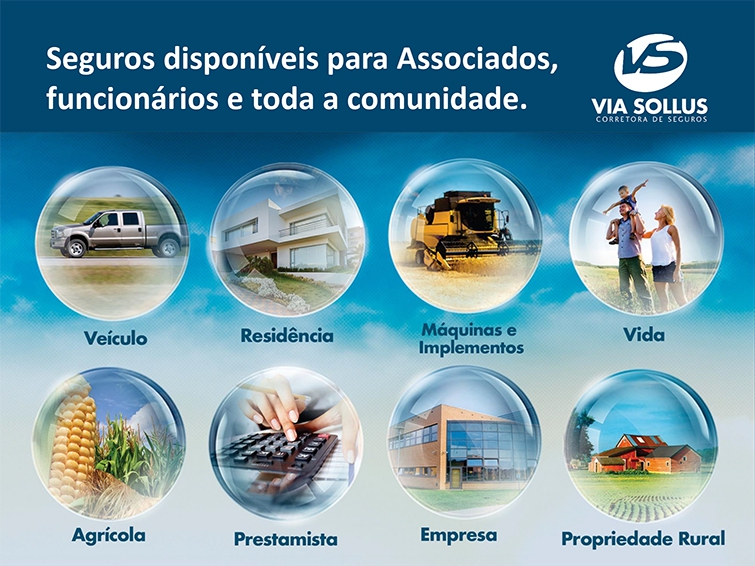 Fornecer e contratar seguros em diversos segmentos para atender às necessidades dos segurados cooperados, funcionários e da comunidade. Este é o trabalho diário da Via Sollus Corretora de Seguros que, em maio completa 11 anos. Entre os seguros oferecidos estão os de veículos, máquinas e implementos, residencial, vida, empresarial, prestamista e agrícola.