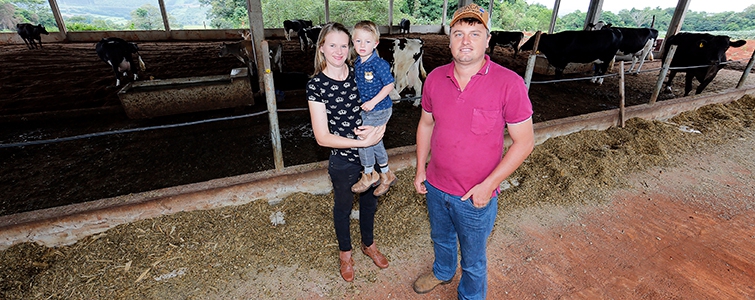 | Casal Fábio e Tatiane Groff Hemkemeier, de Manoel Ribas (PR) implantou o Compost Barn para novilhas e vacas em lactação |