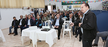 Nos encontros o presidente da Coamo e Credicoamo, José Aroldo Gallassini, que conduz todas as reuniões em contato direto com os cooperados, lembrou da missão da cooperativa de gerar renda aos associados com desenvolvimento sustentável do agronegócio, apresentando números da estrutura e atuação da Coamo no ramo agrícola industrial. Dr. Aroldo fez ainda uma análise da situação do Brasil, destacando a projeção da inflação brasileira de 3,89% em 2019, o PIB (Produto Interno Bruto) de 1,00% neste ano e a variação do dólar no período de R$ 3,632 até R$ 4,122.