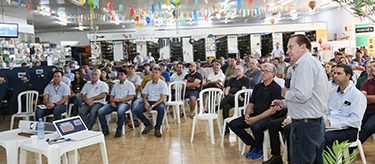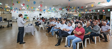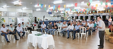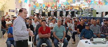 A gerência de Assistência Técnica também tem importante participação nas Reuniões de Campo, levando informações pontuais e determinantes para a tomada de decisão dos cooperados. O gerente Marcelo Sumiya, detalha os valores aproximados para produção, levando em consideração produtividades e preços de insumos necessários para o cultivo. De forma simplificada, Sumiya apresenta ainda os principais pontos e mudanças do Plano Agrícola e Pecuário do Governo Federal, com foco na taxa de juros e seguro agrícola. Destaca também os programas e serviços disponibilizados pela Coamo, como o Gestor Rural e Fideliza.