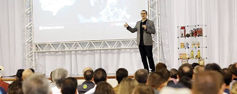 | Professor Pedro Calabrez, PHD em Neurociência, que abordou o tema “Liderança Competitiva” |