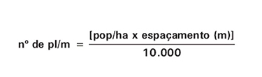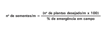 Para calcular o número de sementes a serem distribuídas, é necessário que se conheça o poder germinativo do lote de sementes. Essa informação deve estar disponível na nota fiscal de compra da semente (% germinação), bem como o Peso de Mil Sementes - PMS O número de plantas/metro a ser obtido na lavoura é estimado levando em conta a população de plantas desejada/ha e o espaçamento adotado, usando a seguinte fórmula:
