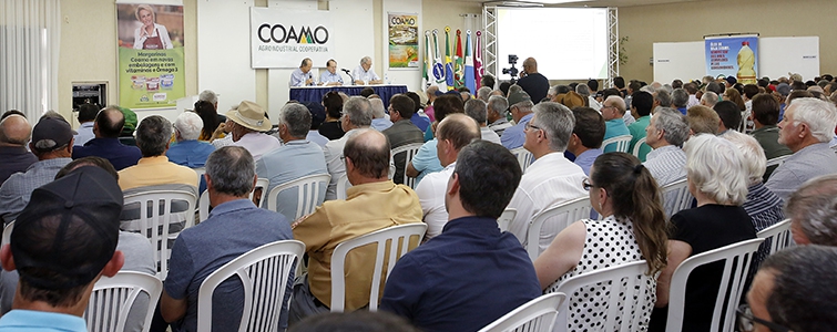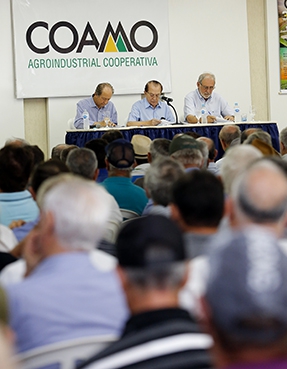 Considerando a realidade atual e vislumbrando o futuro da Coamo, que em 2020, completará 50 anos de atividades, os associados da Coamo aprovaram em Assembleia Geral Extraordinária (AGE) no dia 02 de outubro, na sede social da Arcam em Campo Mourão, a reforma integral do Estatuto Social com ênfase na adequação da estrutura de Governança Corporativa da Coamo. O evento contou com centenas de cooperados representantes de todas as regiões da área de ação da cooperativa nos Estados do Paraná, Santa Catarina e Mato Grosso do Sul. “Este tema é de grande importância para a continuidade da Coamo. Por isso, submetemos aos associados em Assembleia Geral Extraordinária e explicamos como será a cooperativa, e o assunto foi aprovado por unanimidade”, informa o engenheiro agrônomo José Aroldo Gallassini, idealizador e presidente da Coamo.