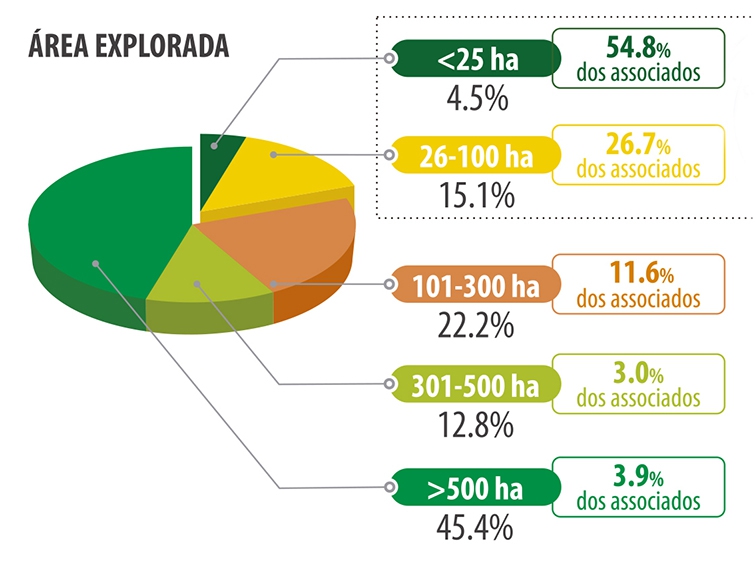 Dos associados da Coamo, 81,5% plantam em propriedades rurais de 25 a 100 hectares.