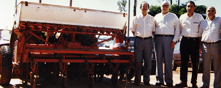 | Pioneiros do Plantio Direto em Campo Mourão: Ricardo Calderari, Henrique Salonski (em memória), Joaquim Montans e Gabriel Borsato |