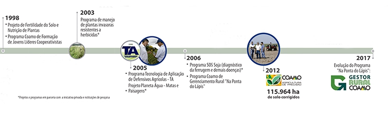 A Fazenda Experimental Coamo foi alicerce para pesquisas voltadas às tecnologias básicas para a conservação de solos, como o sistema de plantio direto, que revolucionou a agricultura, bem como, rotação de culturas, com um ensaio de mais de 30 anos - um dos mais antigos do Brasil. “Saímos de uma produção de no máximo 70 sacas de soja por alqueire, para 200”, lembra Dias. Ela acrescenta que a estação de pesquisa trabalha, anualmente, com grande número de ensaios. “Para se ter uma ideia temos mais de 150 trabalhos de pesquisa e experimentação.”