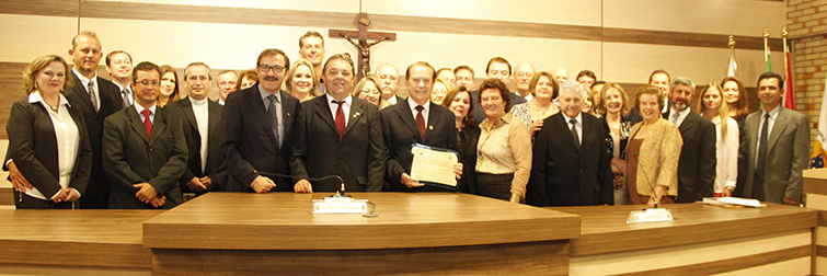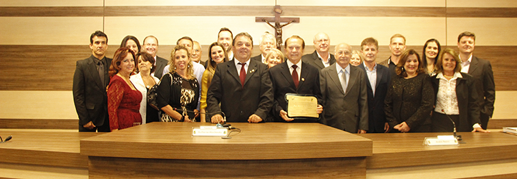 “A Câmara municipal de Brusque reverencia o ilustre filho colocando-o na galeria dos notáveis comendadores de Brusque e orgulhosa pelos seus significativos feitos.” Com estas palavras, o presidente do Poder Legislativo de Brusque, em Santa Catarina, Guilherme Marchewsky, encerrou a sessão solene de entrega da Comenda do Mérito Profissional ao conterrâneo, José Aroldo Gallassini, no plenário da Casa de Leis, na noite de 12 de agosto de 2014.