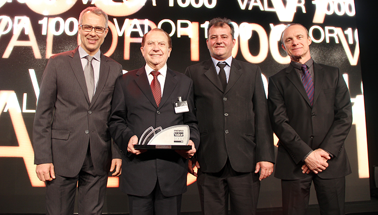 CRITÉRIOS – O presidente e idealizador da Coamo, José Aroldo Gallassini, recebeu o troféu Valor 1000 durante a cerimônia que contou com a presença do ministro da Fazenda, Guido Mantega e empresários de diversos segmentos da economia. Na soma dos indicadores: receita líquida, margem obtida, crescimento sustentável, rentabilidade, margem de atividade, liquidez corrente, giro do ativo e cobertura de juros, a Coamo é a campeã da agropecuária do Brasil.
