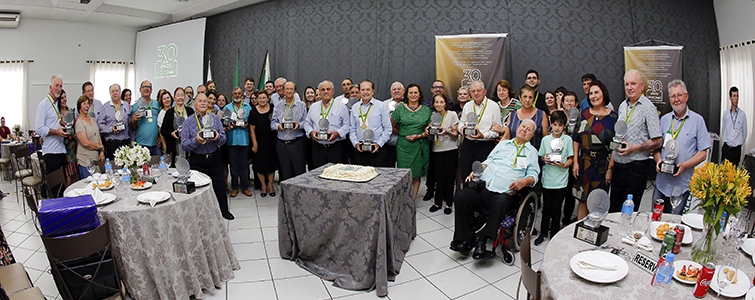 Os associados fundadores e os familiares representantes dos falecidos receberam da diretoria um troféu e uma medalha comemorativa dos 30 anos de fundação da cooperativa. A solenidade foi prestigiada pela diretoria executiva, membros dos Conselhos de Administração e Fiscal, gerentes da Credicoamo, superintendentes e gerentes da Coamo, além de familiares e convidados, e o presidente do Sistema Ocepar, José Roberto Ricken.