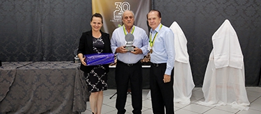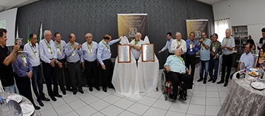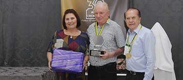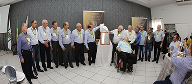 | Fundadores e familiares participaram de um evento em Campo Mourão, para marcar os 30 anos da Credicoamo, com troféus e medalhas |