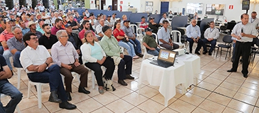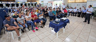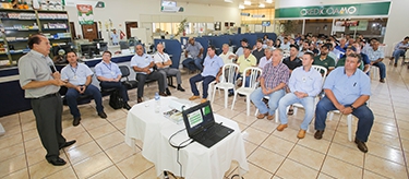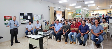 O gerente de Assistência Técnica, Marcelo Sumiya, também, participou das reuniões levando informações sobre os custos de produção, linhas de créditos e programas para melhorar o sistema de produção.