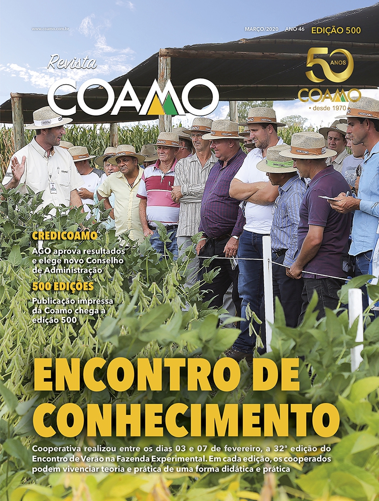 Ao comemorar a edição de número 500, a Revista Coamo continua se destacando. Com uma maior estrutura, nova diagramação e visão mais ampla dos seus objetivos, a Revista cumpre a missão de levar informações das atividades desenvolvidas pelos cooperados, e setores cooperativista e agropecuário nacional.