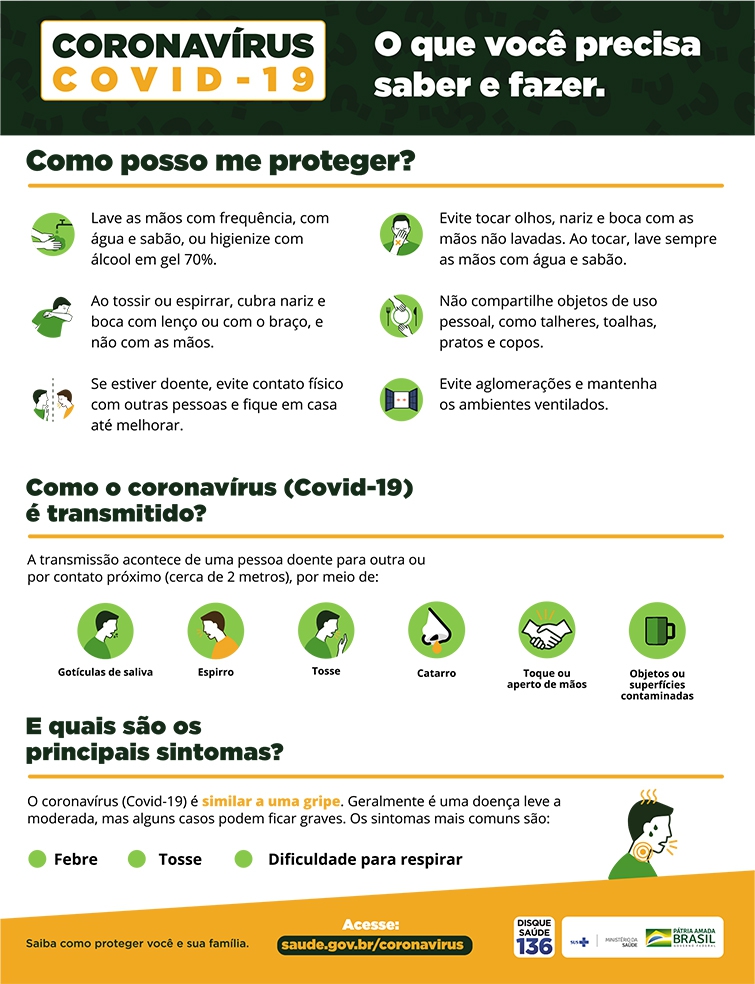 - Disponibilização de álcool em gel e cartazes de orientações sobre as medidas para evitar a doença.