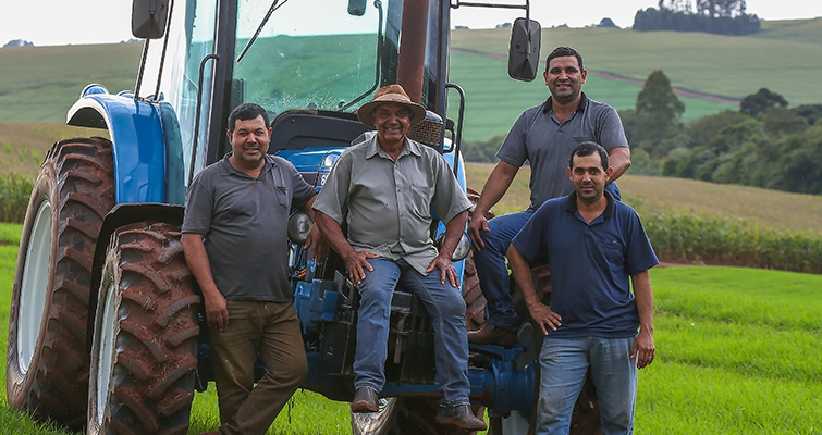 | Ele trabalha na propriedade em parceria com os três filhos, Sidenei, Osnei e Rogerlei, também cooperados. |