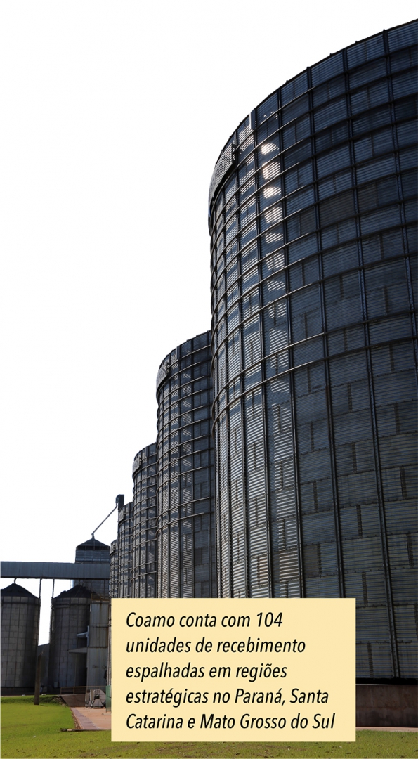A Coamo conta com 104 unidades de recebimento espalhadas em regiões estratégicas no Paraná, Santa Catarina e Mato Grosso do Sul. São estruturas eficientes, preparadas e com alto nível de automatização. “A Coamo está acompanhando a evolução no campo para que possa receber e armazenar a produção dos cooperados. São realizados investimentos constantes visando aprimorar o trabalho”, comenta o diretor de Logística e Operações da Coamo, Edenilson Carlos de Oliveira.