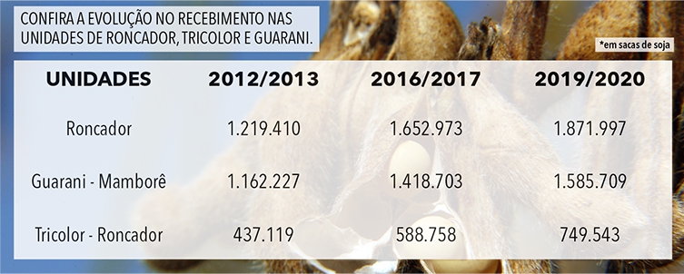 O presidente Executivo Airton Galinari destaca a evolução dos cooperados e a satisfação de colher grandes produções. "Em várias regiões registramos volumes recordes no recebimento da safra de soja, como, por exemplo, nas regiões de Roncador, Tricolor, Guarani e no Mato Grosso do Sul. Em Caarapó foram mais de 4,0 milhões de sacas e nas unidades de Maracaju, o volume foi superior a 5,0 milhões de sacas. Recebimento histórico em uma única safra."