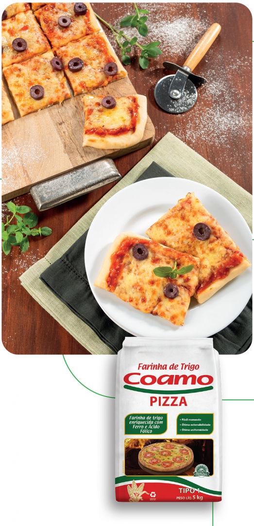 - 4 xícaras (chá) de FARINHA DE TRIGO COAMO PIZZA
