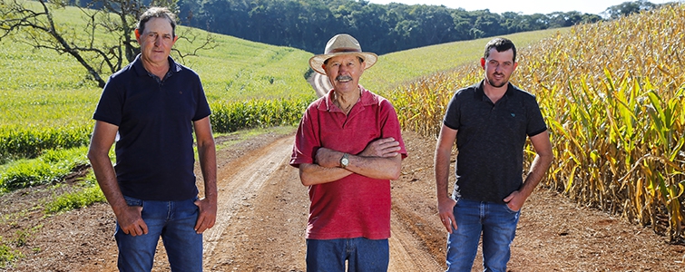 No sítio Santo Reis, em Pitanga (Centro do Paraná), o cooperativismo está enraizado nos laços da família desde a década de 80. Há três gerações, é a filosofia que norteia os passos da família Campos. O pai Mauri Virgilio de Campos, trabalha com o filho Virginio e o neto Everaldo. “Meus filhos e netos estão dando continuidade ao trabalho que iniciei. Daqui a pouco chegam os bisnetos que também receberão os mesmos ensinamentos de trabalho em família, com muita cooperação. Já tenho uma bisneta de 16 anos, que logo poderá começar a participar”, comemora seu Mauri. O cooperado lembra que antes de se associar a Coamo, sofreu na atividade. “Eu entregava numa empresa que um dia, simplesmente sumiu. Eu perdi muito. Eu era associado da Coamo há pouco tempo, e não conhecia de fato o trabalho da cooperativa, foi quando eu decidi trabalhar 100% com a Coamo. Então, mergulhei no cooperativismo, passei a participar de todas as reuniões e eventos técnicos. Me envolvi totalmente e hoje agradeço por ter a Coamo, pois a cooperativa chegou para nos ajudar e apoiar”, lembra Mauri.