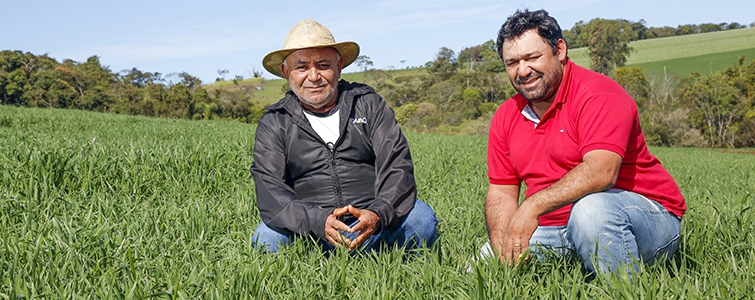 Cultiva cerca de 240 alqueires de lavoura e, em outra área semelhante, cria gado de corte, com apoio do filho Tadeu Voroniuk Junior, veterinário por formação. “Graças a Deus, a tecnologia e serviços oferecidos pela Coamo, estamos melhorando nossos resultados a cada ano”, agradece. Braço direito nas atividades e na vida do seu Tadeu, o também cooperado e filho Junior, carrega com orgulho o mesmo nome do pai, além de seguir os mesmos passos no trabalho. Ligado à agricultura e, sobretudo a pecuária, pela formação veterinária, Junior é outro que valoriza a parceria com a Coamo. “A tecnologia oferecida pela Coamo e o trabalho da cooperativa agregam ao nosso desenvolvimento no campo. A cooperativa para nós tem sido fundamental, porque alavanca a atividade do início até o fim. A cada ano que passa melhora ainda mais”, comenta.