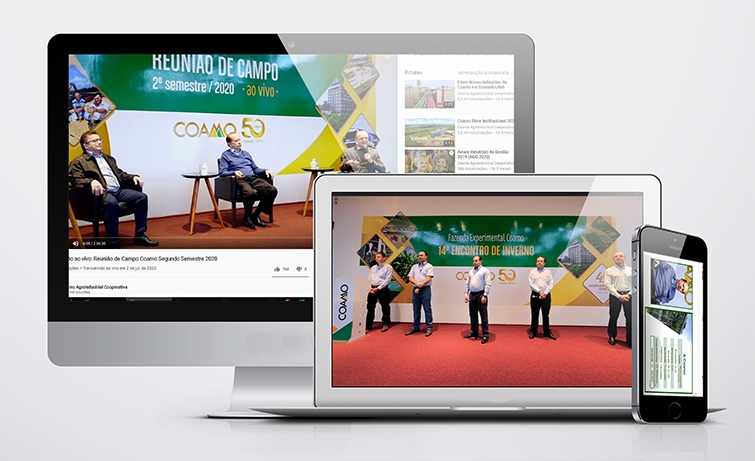 Há seis meses os palcos dos eventos realizados pela Coamo passaram a ser virtuais. Muitos encontros foram transmitidos pelo canal da Coamo no YouTube, por vídeo conferências, via WhatsApp e outras ferramentas digitais. Uma mudança aguardada e esperada pelo mundo, mas que ganhou velocidade devido a pandemia do novo coronavírus, para evitar aglomerações e respeitar o distanciamento social.