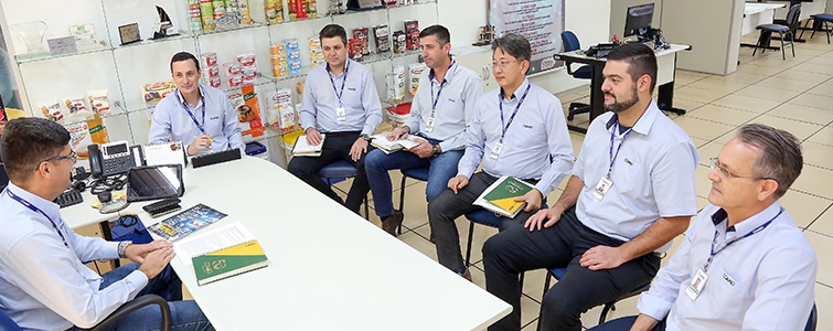 | Wagner Schneider com chefes de departamentos responsáveis pela comercialização dos Alimentos Coamo |