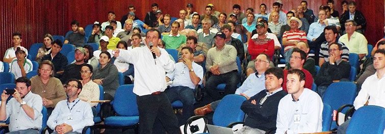Coronel Vivida (PR) Cerca de 190 cooperados participaram do Encontro Tecnológico que teve palestras sobre tecnologia de aplicação, apresentada pelo Detec da Coamo, manejo físico e compactação do solo em sistemas intensivos de produção, proferida pelo pesquisador da Universidade Estadual de Maringá, Cássio Tormena.