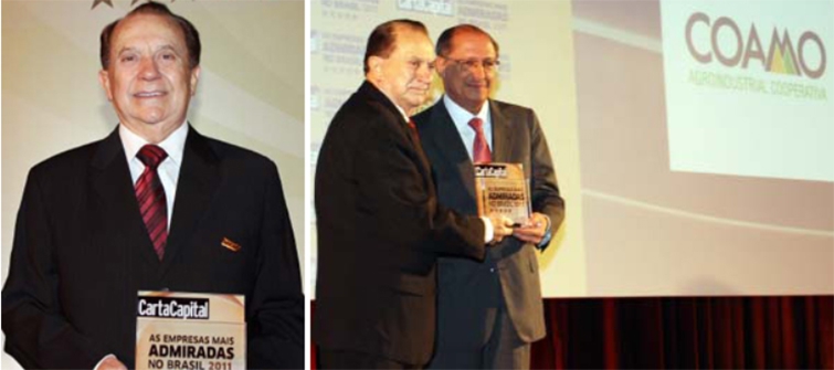 CAMPEÃ DAS CAMPEÃS: A Coamo recebeu em outubro, o título de Campeã das Campeãs do prêmio Melhores do Agronegócio 2011, concedido pela revista Globo Rural.