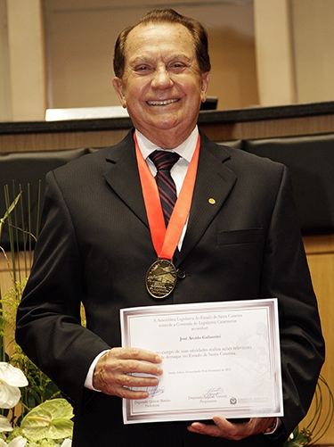 COMENDADOR: José Aroldo Gallassini recebeu o título de Comendador de Brusque, sua terra natal.