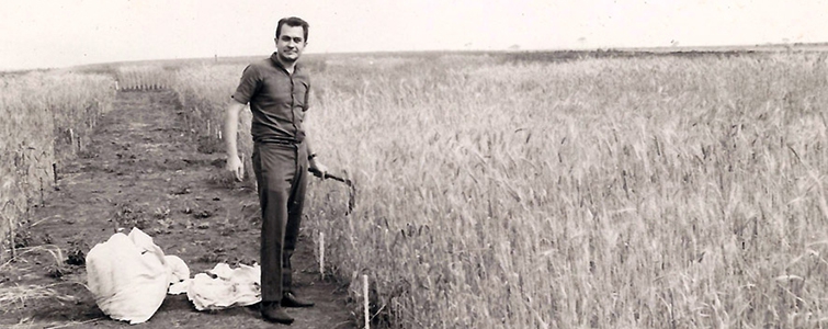 | José Aroldo Gallassini, num campo de trigo em Campo Mourão |